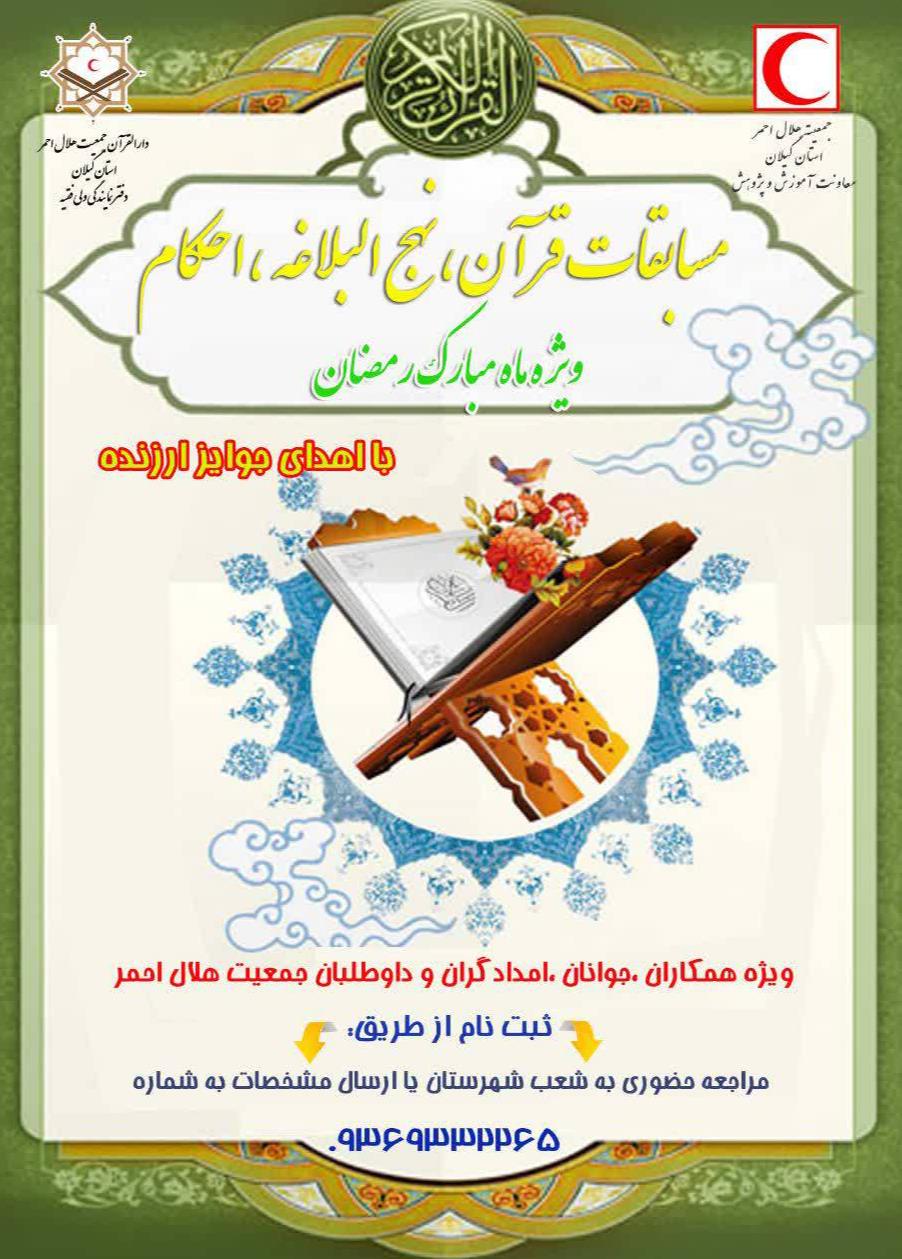 به گزارش روابط عمومی جمعیت هلال احمر استان گیلان؛ حجت الاسلام والمسلمین امیر چهری مسئول دفتر نمایندگی ولی فقیه در جمعیت هلال احمر استان گیلان از برگزاری مسابقات قرآن، نهج البلاغه و احکام با همکاری معاونت آموزش و پژوهش این جمعیت با شعار «خدمت، صلح و دوستی» خبر داد